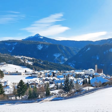 Just 30 minutes from Bolzano, this lively alpine village has everything you need: restaurants, supermarkets, shops, a gym, and more.