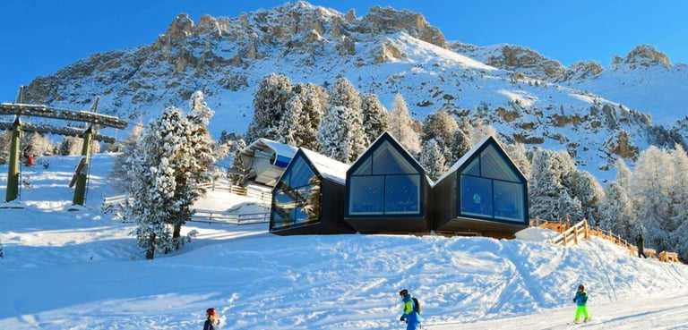 Just a 15-minute bus ride away, the Val di Fiemme- Obereggen ski area offers 120 km of ski slopes, along with fun sledding tracks. You’ll also find great mountain huts to stop for a meal. And you can even try night skiing, for a unique experience under the stars.
